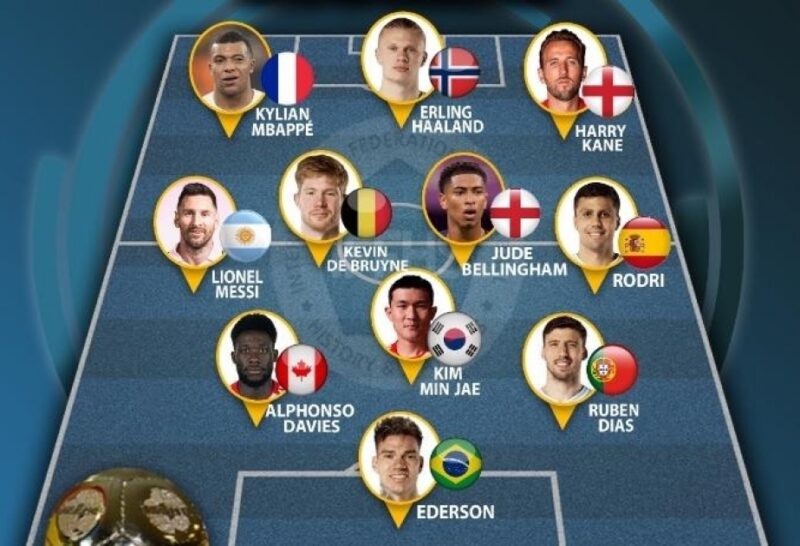 Yarımmüdafiəçilər: Kevin de Bruyne ( Belçika, “Mançester Siti”), Lionel Messi ( Argentina, “İnter Mayami”), Cud Bellinqem (İngiltərə, “Real Madrid”), Rodri (İspaniya, “Mançester Siti”)