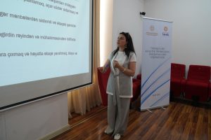 Sumqayıt Dövlət Universitetinin baş müəllimi Aynurə Bağırova “Tənqidi oxu strategiyaları və analitik yanaşma metodları” mövzusundakı təlimində tənqidi oxu bacaıqlarının inkişafında istifadə edilən elmi-metodoloji yanaşmaları, onların üsul və nəticələrini seminar iştirakçılarının diqqətinə çatdırıb.
