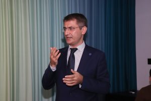 Layihə rəhbəri Zaur İbrahimli QHT-lər nöqteyi-nəzərindən QHT-lərin özəl sektorla KSM sahəsində əməkdaşlığının mövcud vəziyyəti ilə əlaqədar aparılmış araşdırmanın nəticələrini təqdim etdi.