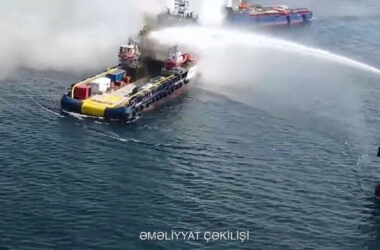 Xəzərdə təchizat gəmisində baş vermiş yanğın tam söndürülüb