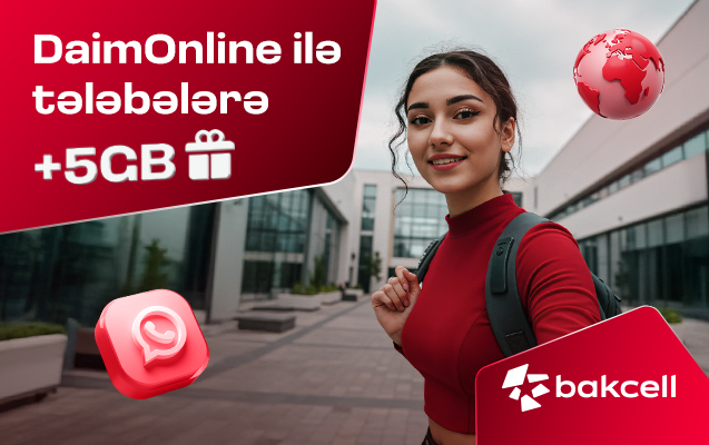İnnovasiya və sürət lideri “Bakcell” Təhsilin İnkişafı Fondu (TİF) ilə birgə əməkdaşlığı çərçivəsində tələbələrə DaimOnline paketi ilə 5GB internet hədiyyə edir. Belə ki, “TələbəPlus” kartına sahib olan tələbələr bu üstünlükdən faydalana biləcəklər.