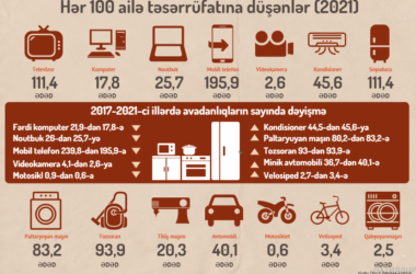 Ölkədə mobil telefon və kompüter alanların sayı azalıb – Televizor satışı artıb/ İNFOQRAFİKA 28 Noyabr 2022 - 21:02