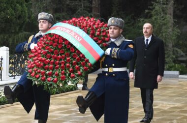 Prezident və birinci xanım Ümummilli Lider Heydər Əliyevin məzarını ziyarət ediblər