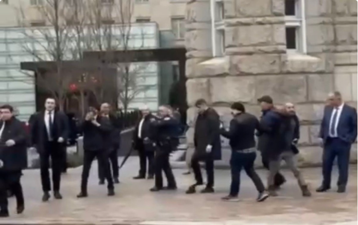Bəyanatda bildirilib ki, Prezident korteji mehmanxana ərazisinə yaxınlaşarkən, etirazçılar mühafizə olunan əraziyə zorla daxil olmağa cəhd edib və Prezident avtomobilinə yönəlik hücum aktları həyata keçiriblər.