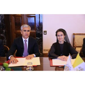 Vatikanda keçirilən görüşdə sənədi Azərbaycan Respublikası Prezidentinin köməkçisi, Heydər Əliyev Fondunun icraçı direktoru Anar Ələkbərov və Vatikan şəhər-dövlətinin qubernatorluğunun prezidenti, rahibə Raffaella Petrini imzalayıblar.