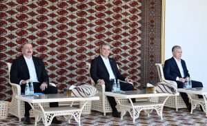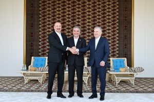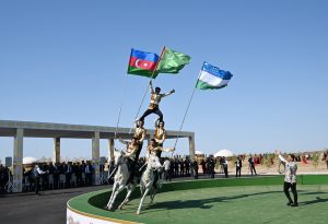 Azərbaycan Respublikasının Prezidenti İlham Əliyev, Türkmənistan Xalq Məsləhətinin sədri Qurbanqulu Berdiməhəmmədov və Özbəkistan Respublikasının Prezidenti Şavkat Mirziyoyev Türkmənbaşı şəhərində “Axaltəkə” atlarına və milli “Galkynysh” atlı qrupunun çıxışına baxıblar.