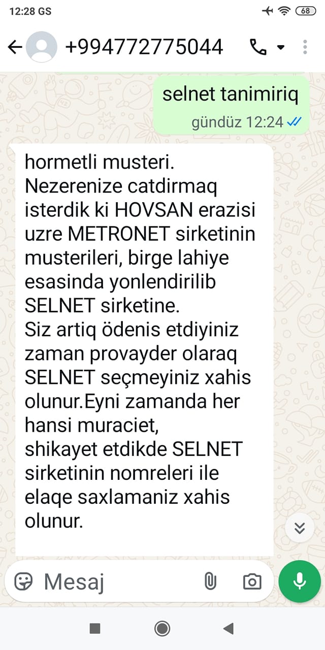 Bənzər halları digər istifadəçilər də təsdiqləyir. Onların sözlərinə görə, bir neçə ay öncə provayderin Selnet şirkətinə müştəriləri keçirməsi prosesi zamanı xidmət keyfiyyəti daha da pisləşib. “Keçirməz olardı, kaşki. Xidmət çox bərbaddır, fasilələr davamlıdır,” – deyə bir abonent bildirir.