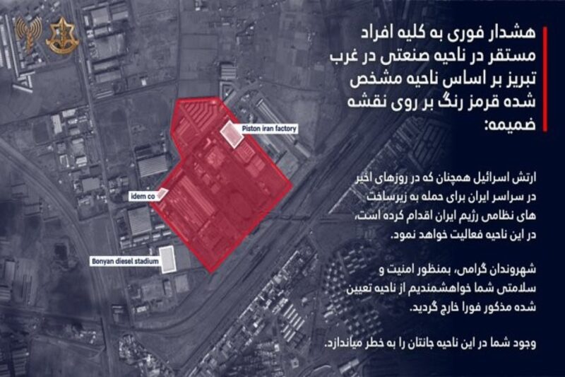 İsrail ordusu planlaşdırılan aviazərbələrlə bağlı Təbriz sakinlərinə təcili xəbərdarlıq edib.