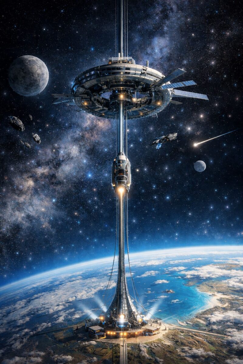 Kosmik lift ideyası Yer səthindən kosmosa qədər uzanan nəhəng kabel vasitəsilə yüklərin və insanların orbitə daşınmasını nəzərdə tutur.