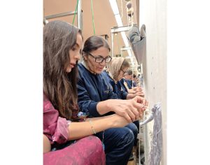 Leyla Əliyeva xalça ilə tanışlıqdan sonra toxucularla vaxt keçirib və tarixi xalçanın bir hissəsinə çevrilərək ona ilmə atıb.