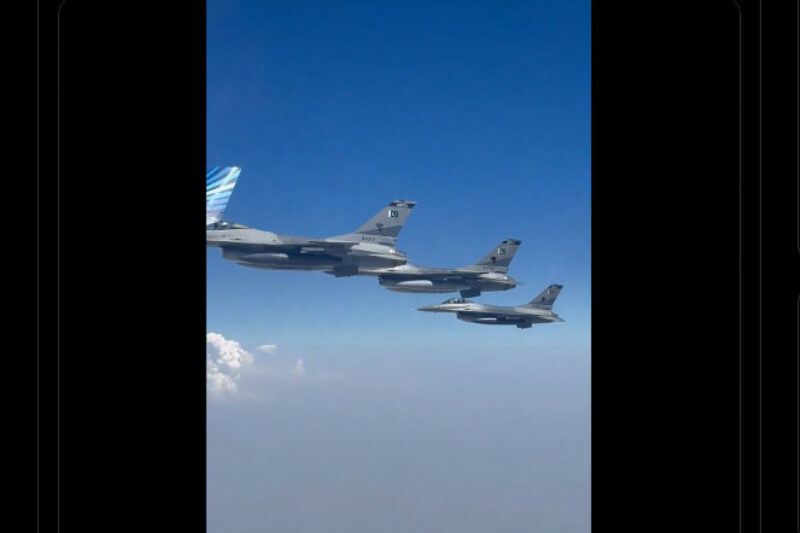 “Pakistanın hava məkanına daxil olarkən Pakistan Hərbi Hava Qüvvələrinə məxsus döyüş təyyarələri Azərbaycanın 1 nömrəli heyətini salamlayır və müşayiət edir!”, – paylaşımda deyilir.