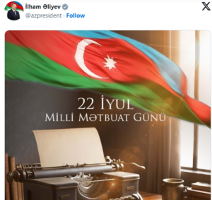 Prezident İlham Əliyev 22 iyul – Milli Mətbuat Günü münasibətilə paylaşım edib.