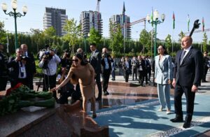 Avqustun 22-də Azərbaycan Respublikasının Prezidenti İlham Əliyev, birinci xanım Mehriban Əliyeva və qızları Leyla Əliyeva Daşkənddəki Heydər Əliyev Meydanında Ümummilli Liderin barelyefi önünə gül dəstələri qoyublar.