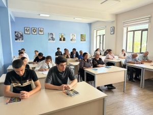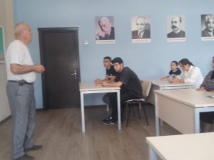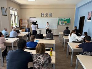 Sonra təlimçi Fəxrəddin Babayev benefisarları salamlamış, hazırlanmış proqram əsasında təlimə başlamışdır. Təlim zamanı təlimçi ilk birinci saat ərzində benefisarlara ədəbi dilin normaları, qramatik və leksik normalar haqqında məlumat vermiş, praktiki işlə təlimi davam etdirmişdir.
