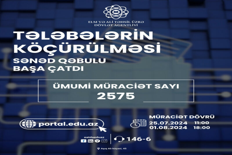 Müraciətlərin qəbulu 25 iyul-01 avqust tarixlərində portal.edu.az vasitəsilə aparılıb. Ümumilikdə 2575 tələbə təhsil müəssisəsini, ixtisasını və təhsilalma formasını dəyişmək üçün müraciət edib.