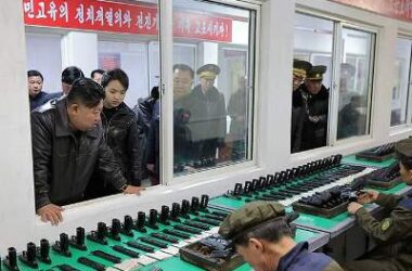 Kim Çen In və qızı hərbi zavodda tapançalara baxıb