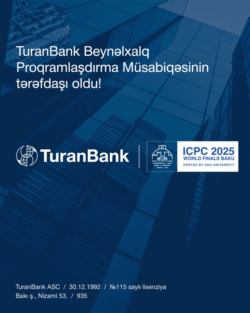 Ölkəmizdə rəqəmsallaşma proseslərinə fəal dəstək verən TuranBank 31 avqust – 5 sentyabr 2025-ci il tarixlərində Azərbaycanda keçiriləcək 49-cu Beynəlxalq Proqramlaşdırma Müsabiqəsinin (ICPC) Dünya Finalının Azərbaycan Banklar Assosiasiyası çərçivəsində rəsmi tərəfdaşıdır.