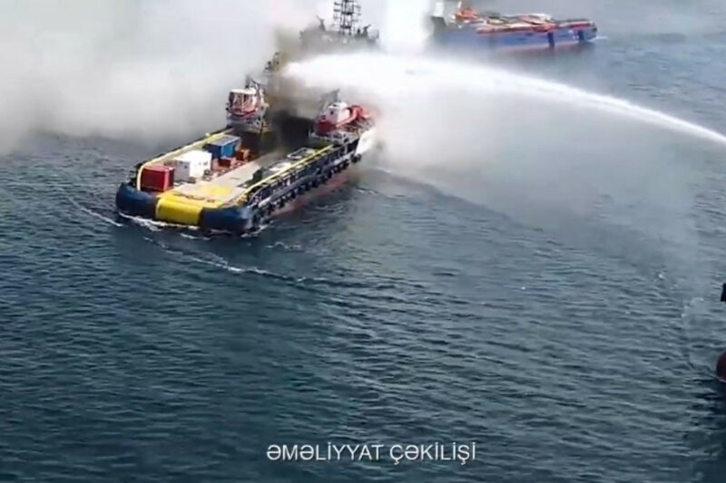 Həyata keçirilmiş fasiləsiz tədbirlər sayəsində Xəzər dənizindəki təchizat gəmisində baş vermiş yanğın tam söndürülüb.